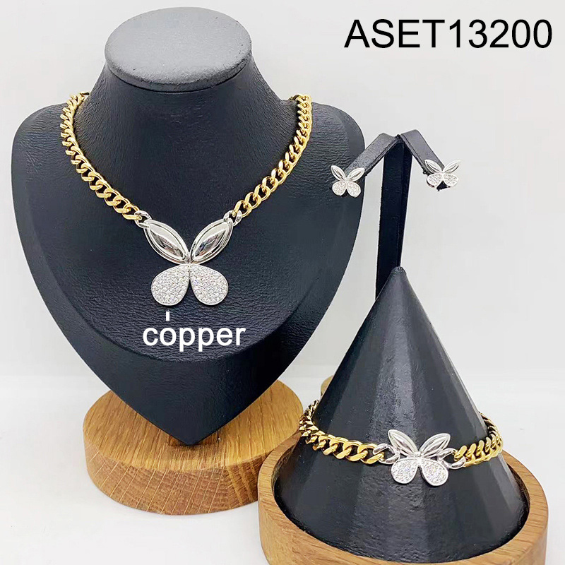 Level B Fashion Jewelry New Trendy Animal Butterfly Two Tone 3pcs SET;Material:copper (cobre)