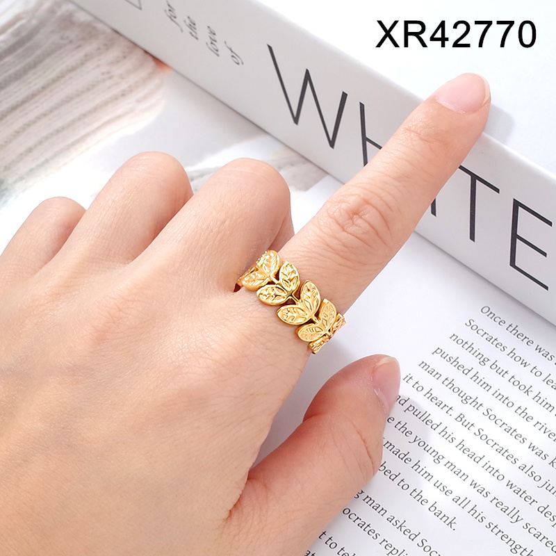 Level B Stainless Steel New Trendy Women Jewelry Leaf Golden Open Rings;Ring size can be adjusted freely