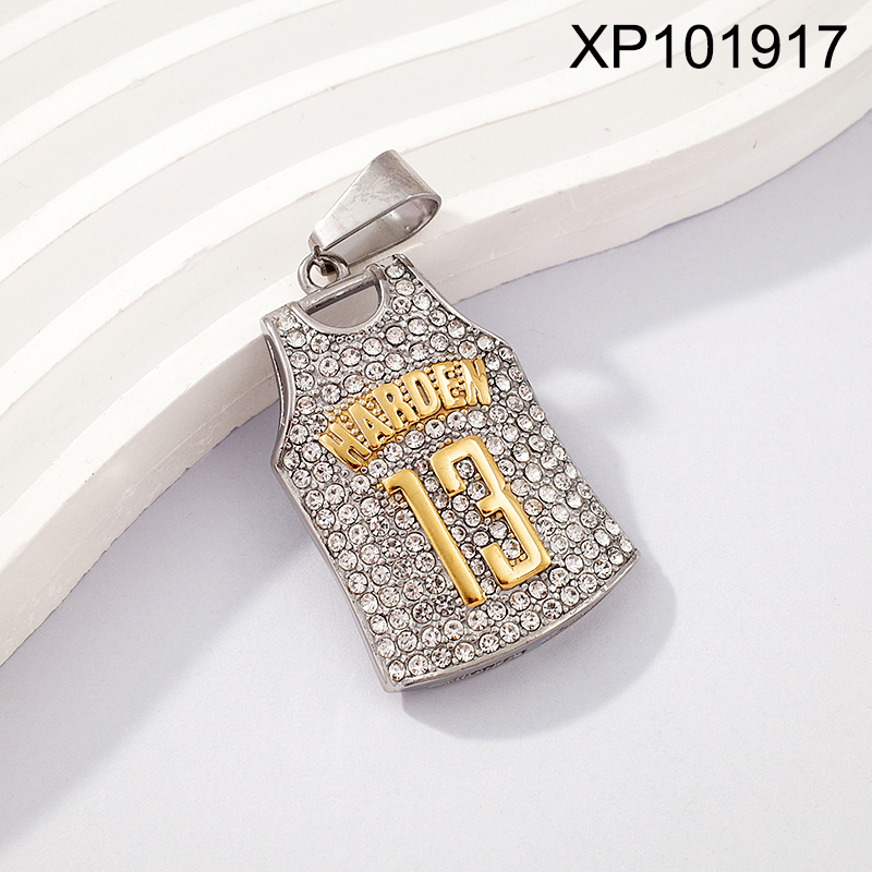 Level B Stainless Steel New Trendy Man Jewelry Number 13 jersey Two Tone Casting Pendant