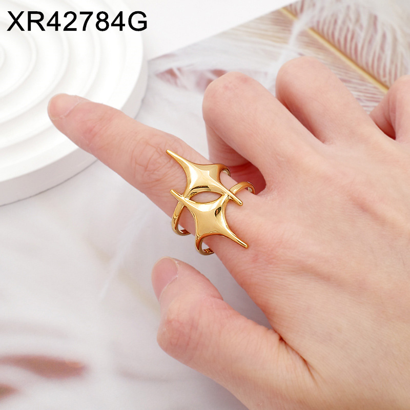 Level A Stainless Steel New Trendy Women Jewelry Star Golden Open Rings;Ring size can be adjusted freely