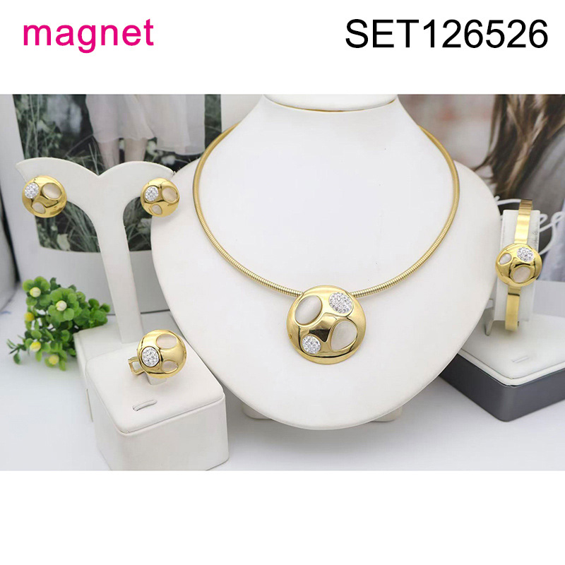 Level B Stainless Steel New Trendy Women Jewelry Round Golden Magnet buckle 4pcs SET