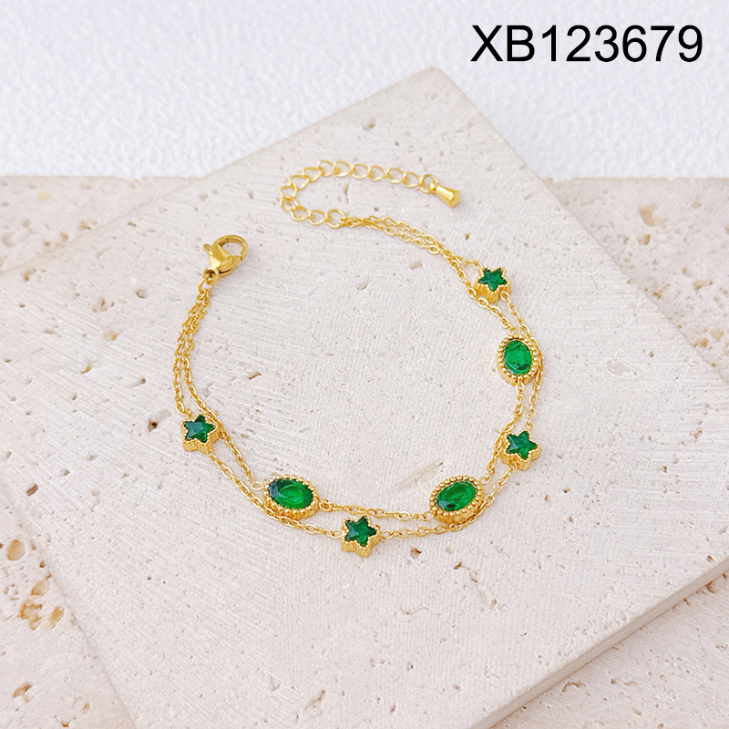 Level B Stainless Steel New Trendy Women Jewelry Green Oval Star Golden Bracelet