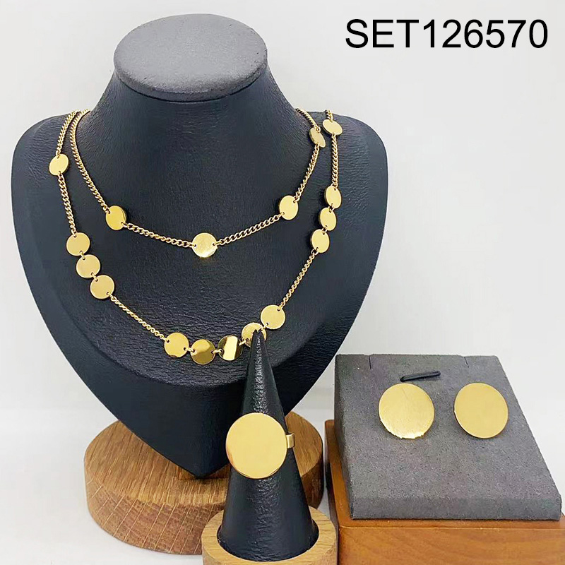 Level B Stainless Steel New Trendy Women Jewelry Two Layers Chain Round Golden 3pcs SET