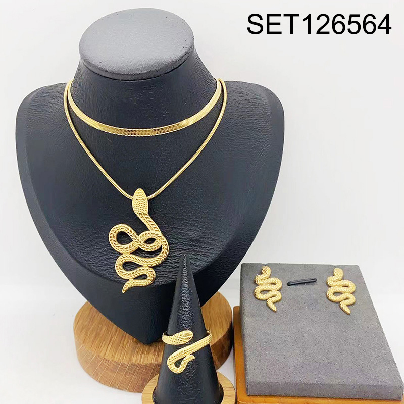 Level B Stainless Steel New Trendy Women Jewelry Two Layers Chain Animal Snake Golden 3pcs SET