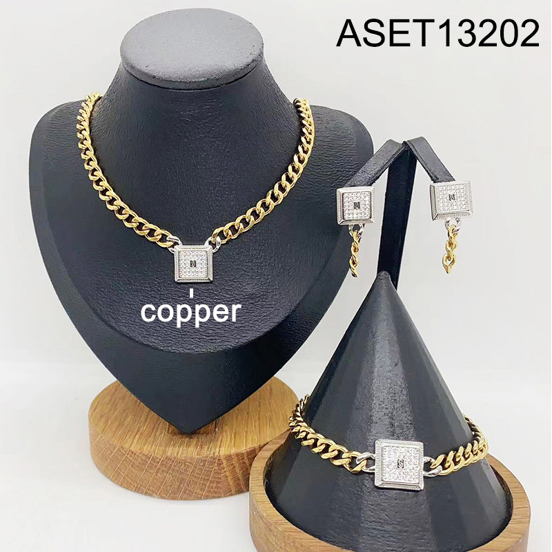 Level B Fashion Jewelry New Trendy Women Jewelry Square Two Tone 3pcs SET;Material:copper (cobre)