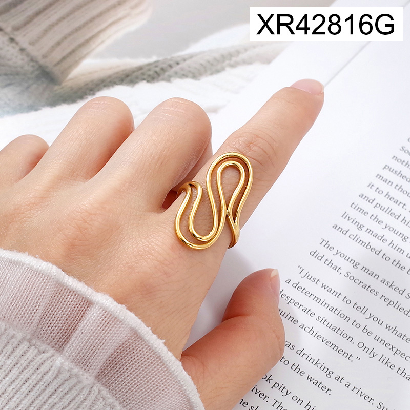 Level A Stainless Steel New Trendy Women Jewelry Golden Open Rings;Ring size can be adjusted freely