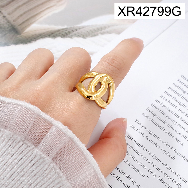 Level A Stainless Steel New Trendy Women Jewelry Golden Open Rings;Ring size can be adjusted freely