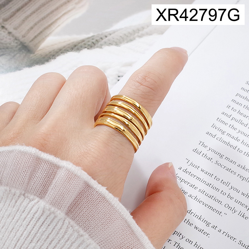 Level A Stainless Steel New Trendy Women Jewelry Hollowed-out lines Golden Open Rings;Ring size can be adjusted freely