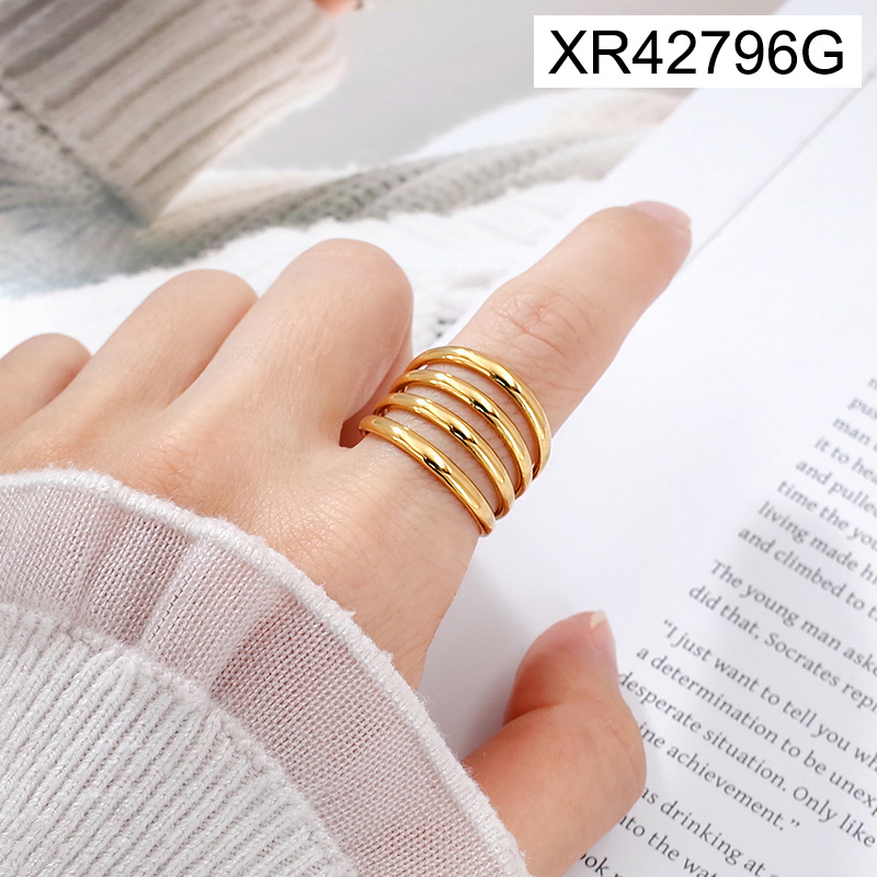 Level A Stainless Steel New Trendy Women Jewelry Hollowed-out lines Golden Open Rings;Ring size can be adjusted freely