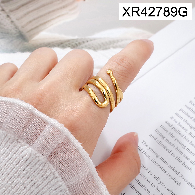 Level A Stainless Steel New Trendy Women Jewelry Golden Open Rings;Ring size can be adjusted freely
