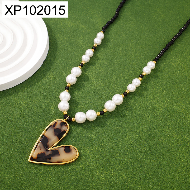 Level B Stainless Steel New Trendy Women Jewelry Pearl Style/Plastic Beads Heart Golden Valentine's Day Pendant