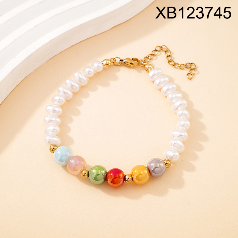 Level C Stainless Steel New Trendy Women Jewelry Pearl Style/Plastic Beads Golden Bead Bracelet