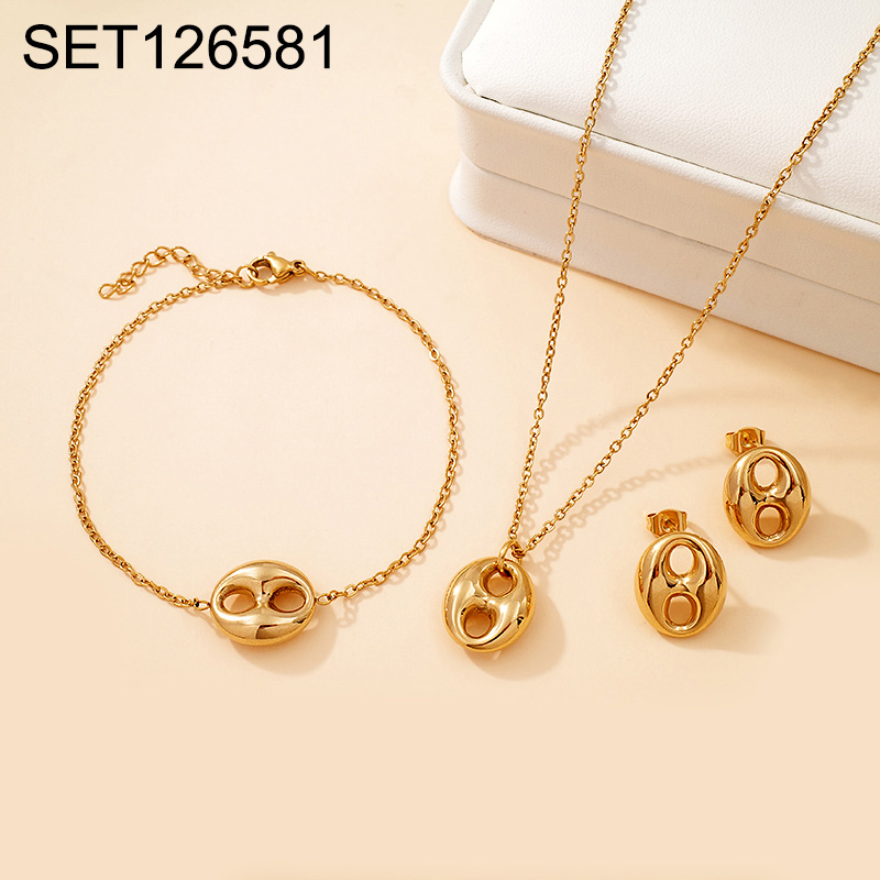 Home > Level B Stainless Steel New Trendy Women Jewelry Coffee beans Oval Pig nose Golden 3pcs SET
