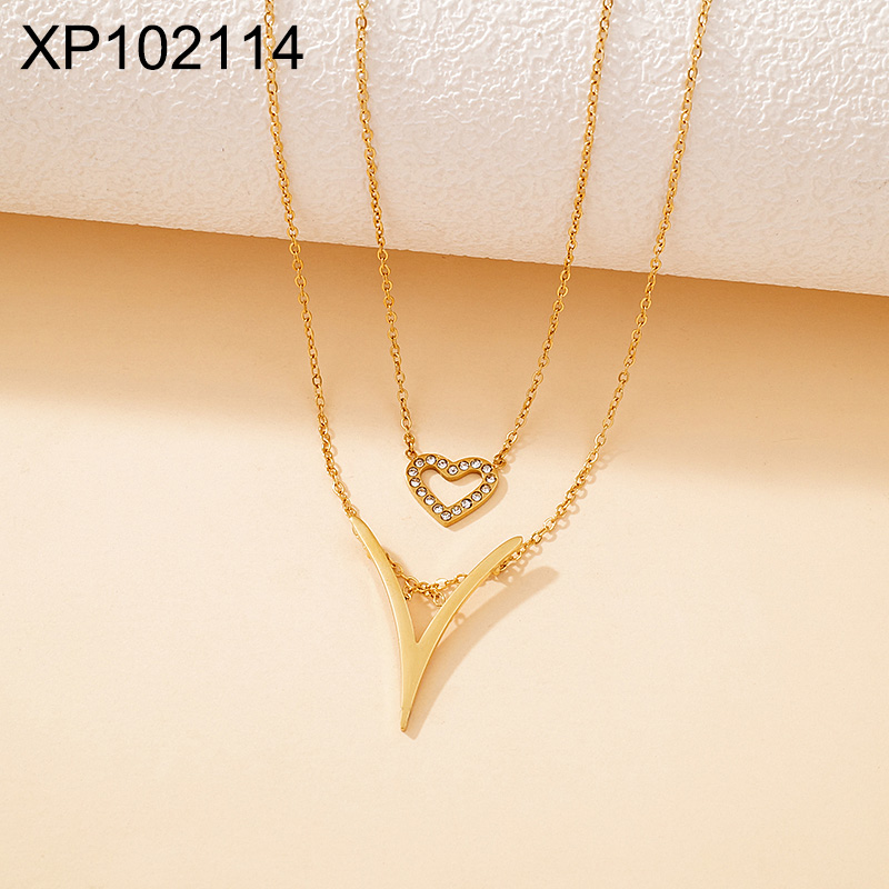 Level B Stainless Steel New Trendy Women Jewelry Two Layers Chain Heart Golden Valentine's Day Pendant