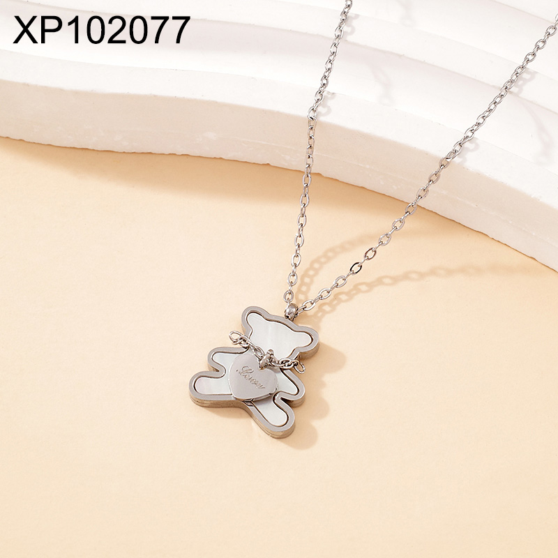 Level B Stainless Steel New Trendy Women Jewelry Animal Bear Steel color Pendant