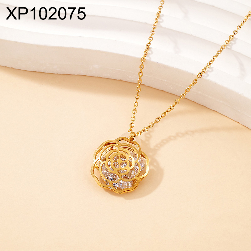 Level B Stainless Steel New Trendy Women Jewelry Flower Golden Pendant