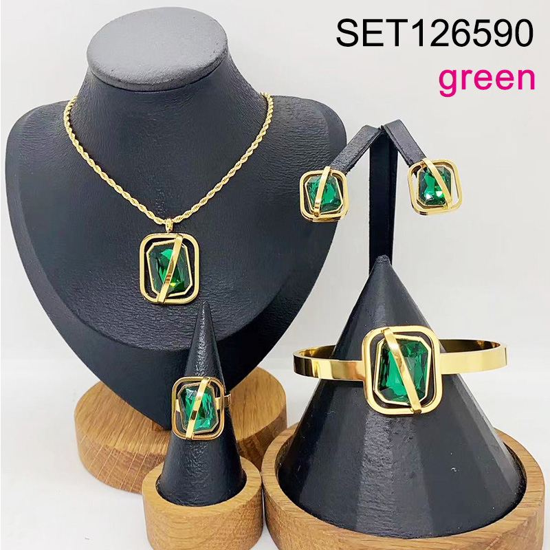 Home > Level B Stainless Steel New Trendy Women Jewelry Green Glass Rectangle Golden 4pcs SET