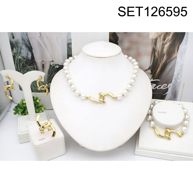 Level B Stainless Steel New Trendy Women Jewelry Pearl Style/Plastic Beads Golden 4pcs SET