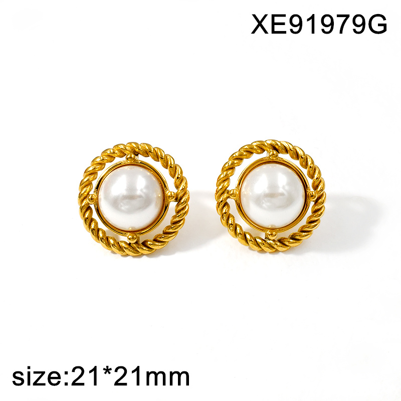 Home > Level A Stainless Steel Jewelry New Trendy Pearl Style/Plastic Beads Round Golden Earrings