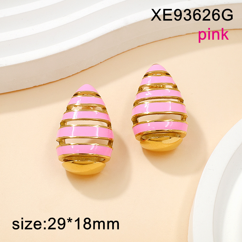 Level A Stainless Steel New Trendy Women Jewelry Drip Oil/Enamel Pink Water Drip Golden Earrings