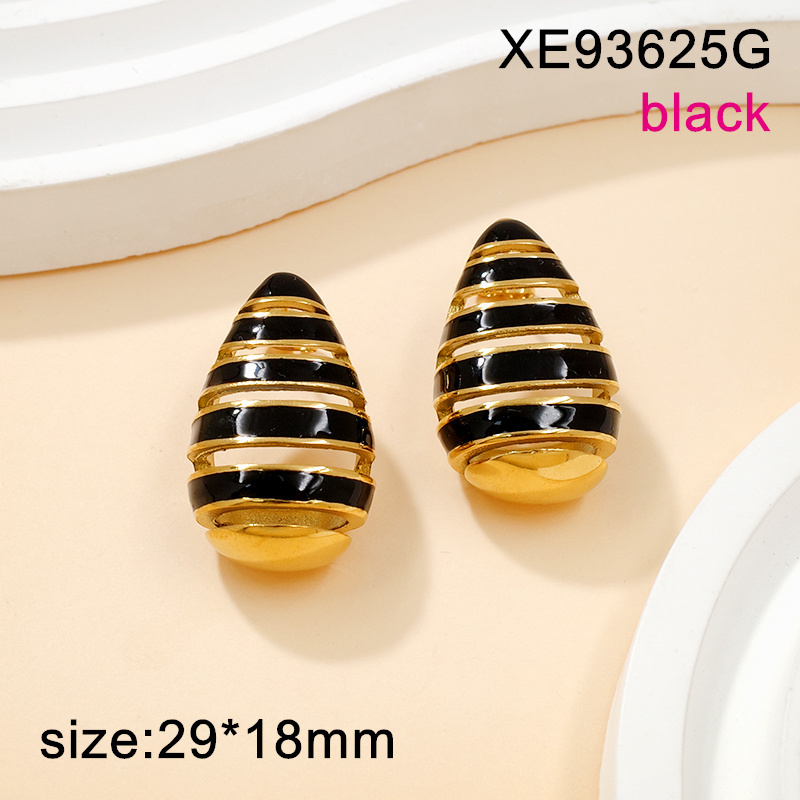 Level A Stainless Steel New Trendy Women Jewelry Drip Oil/Enamel Black Water Drip Golden Earrings