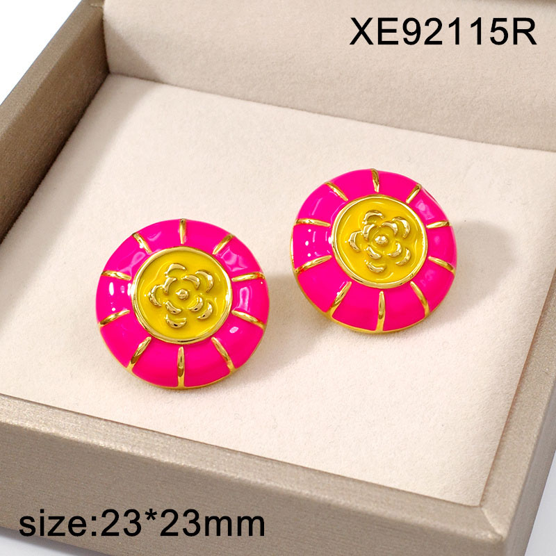 Level A Stainless Steel Jewelry New Trendy Drip Oil/Enamel Flower Golden Earrings