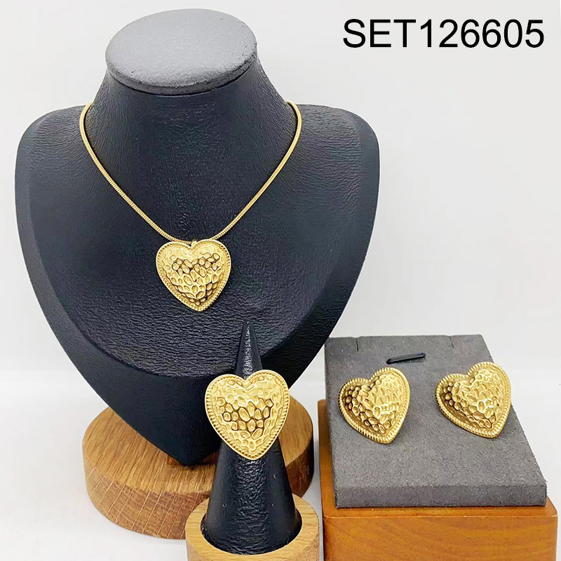 Level B Stainless Steel New Trendy Women Jewelry Heart Golden 3pcs SET