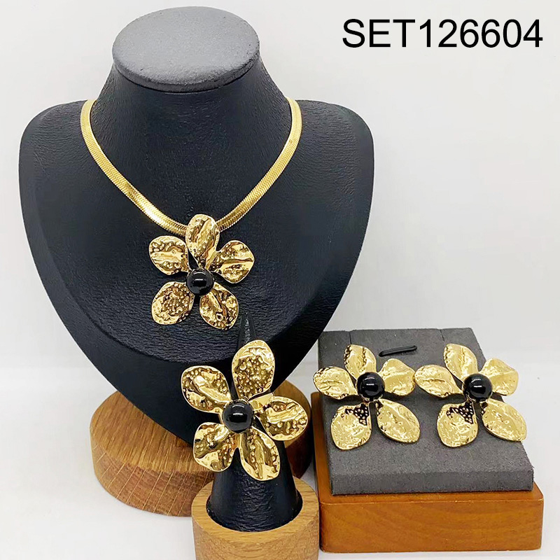 Level B Stainless Steel New Trendy Women Jewelry Flower Golden 3pcs SET
