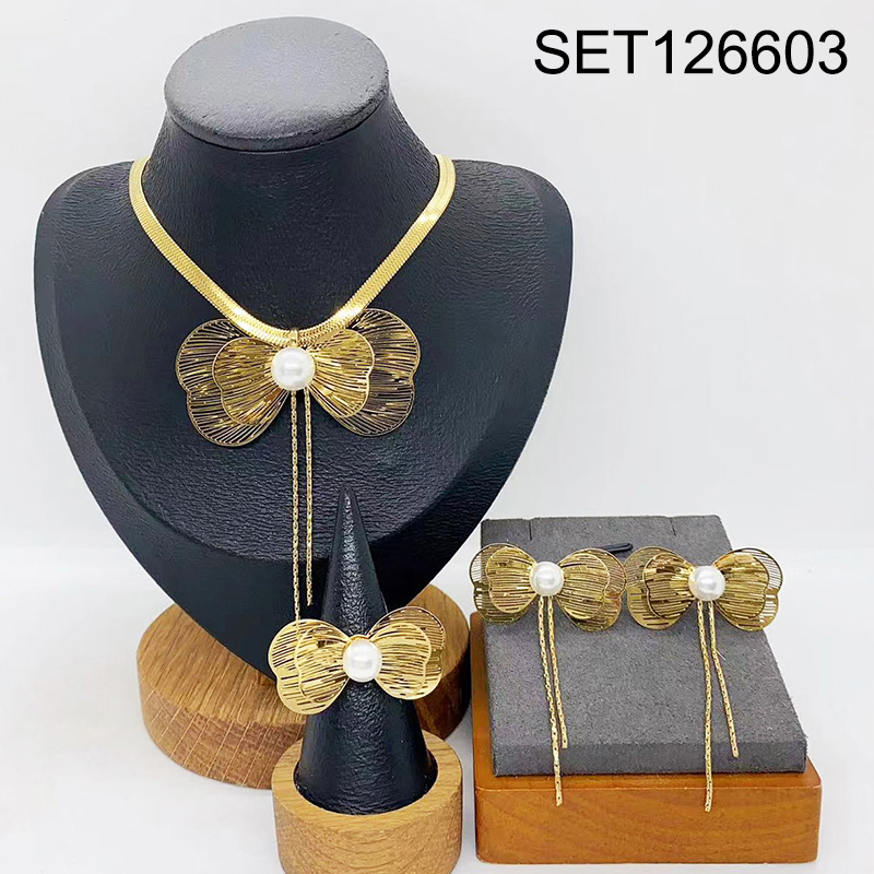 Level B Stainless Steel New Trendy Women Jewelry Pearl Style/Plastic Beads Bowknot Golden 3pcs SET
