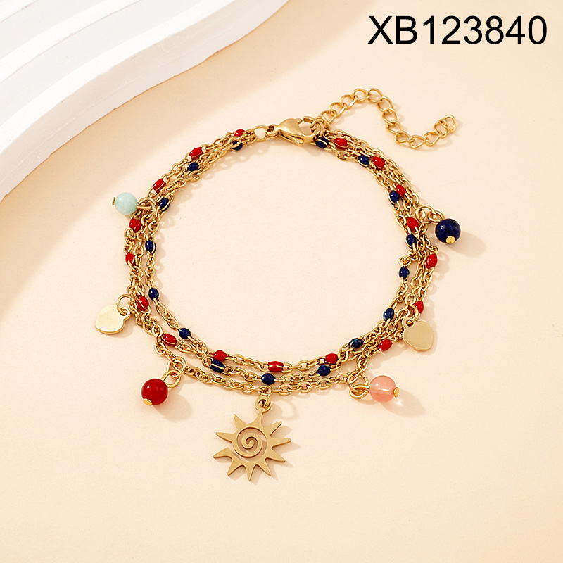 Home > Level B Stainless Steel New Trendy Women Jewelry Three Layers Chain Sun Golden Bracelet