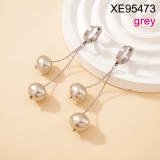 Level B Stainless Steel New Trendy Women Jewelry Pearl Style/Plastic Beads Steel color Hoop Earrings