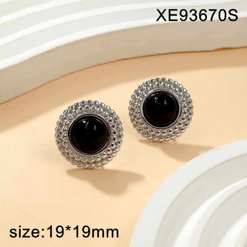 Level A Stainless Steel New Trendy Women Jewelry Pearl Style/Black Resin Bead Round Steel color Earrings