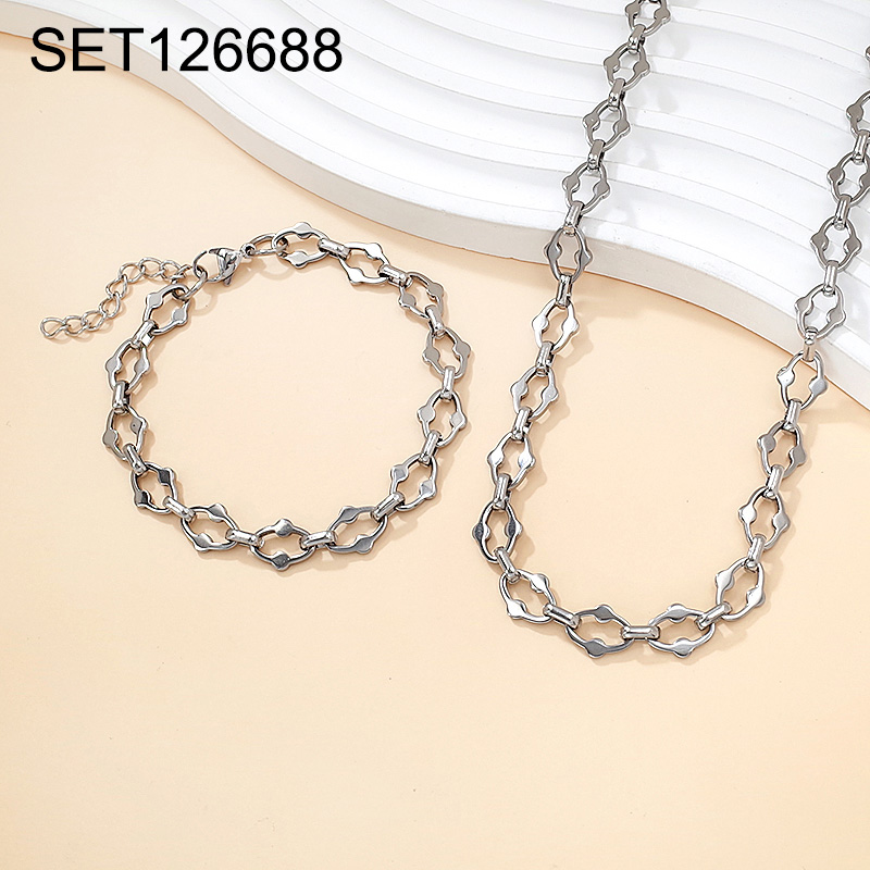 Home > Level B Stainless Steel New Trendy Man Jewelry Steel color Chain SET