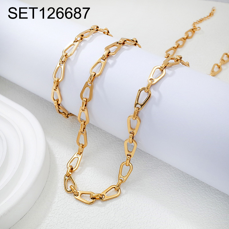 Level B Stainless Steel New Trendy Man Jewelry Golden Chain SET