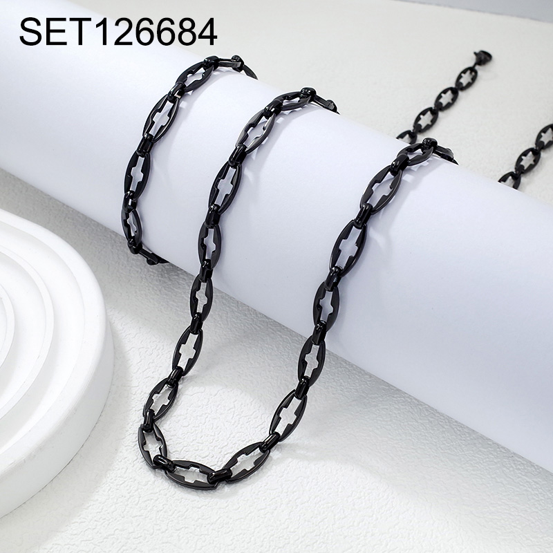 Level B Stainless Steel New Trendy Man Jewelry Plating Black Chain SET
