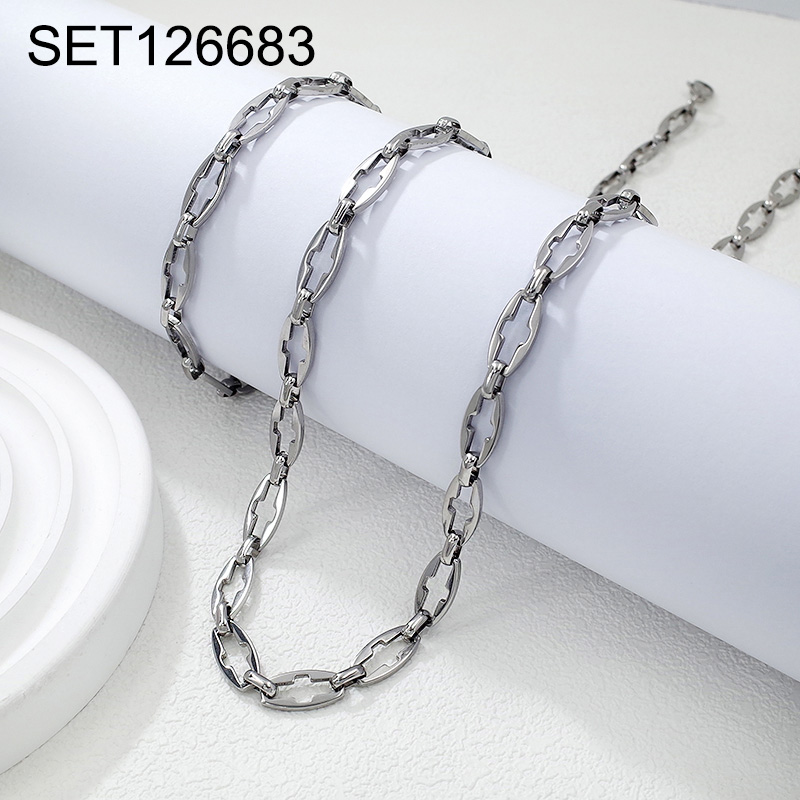 Home > Level B Stainless Steel New Trendy Man Jewelry Steel color Chain SET
