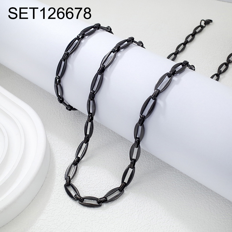 Level B Stainless Steel New Trendy Man Jewelry Plating Black Chain SET