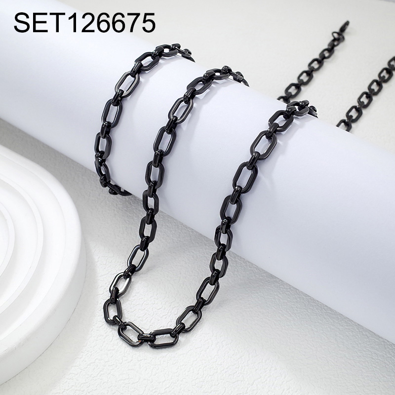 Level B Stainless Steel New Trendy Man Jewelry Plating Black Chain SET