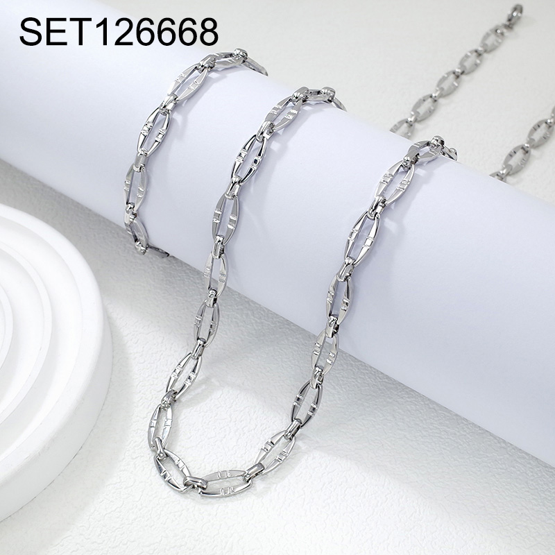Level B Stainless Steel New Trendy Man Jewelry Steel color Chain SET