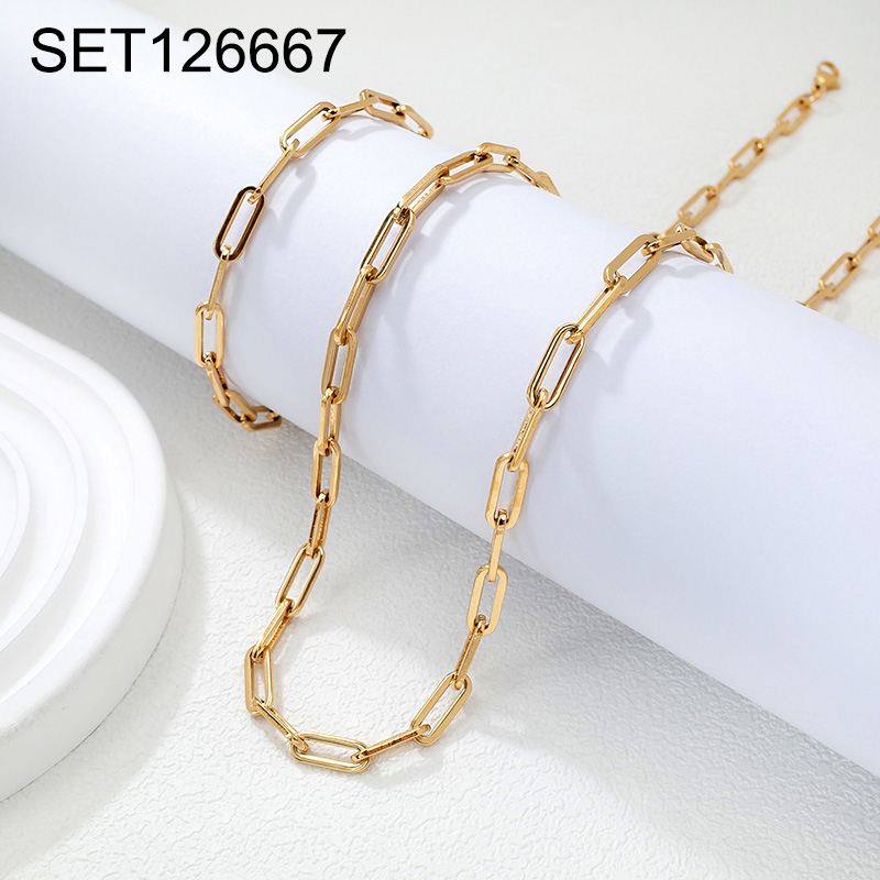 Level B Stainless Steel New Trendy Man Jewelry Golden Chain SET