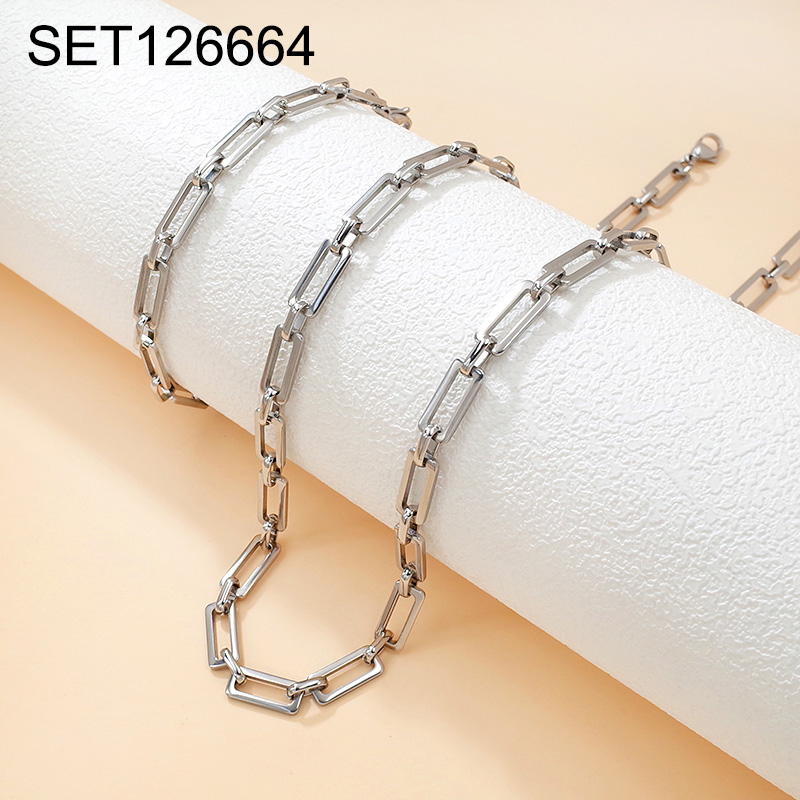 Home > Level B Stainless Steel New Trendy Man Jewelry Steel color Chain SET