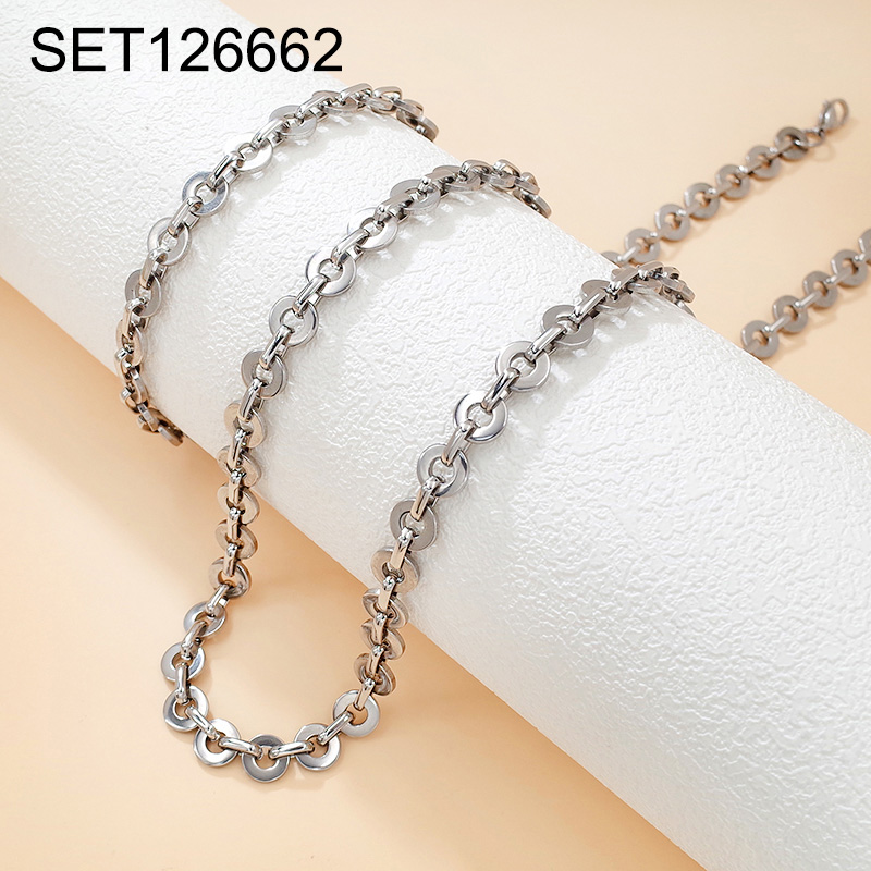 Level B Stainless Steel New Trendy Man Jewelry Steel color Chain SET