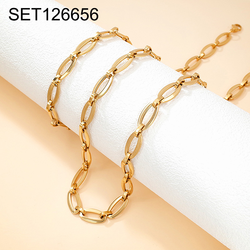 Level B Stainless Steel New Trendy Man Jewelry Golden Chain SET