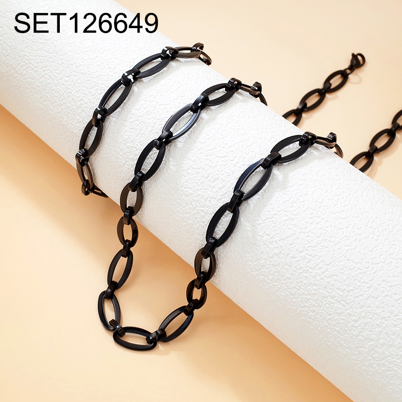 Level B Stainless Steel New Trendy Man Jewelry Plating Black Chain SET