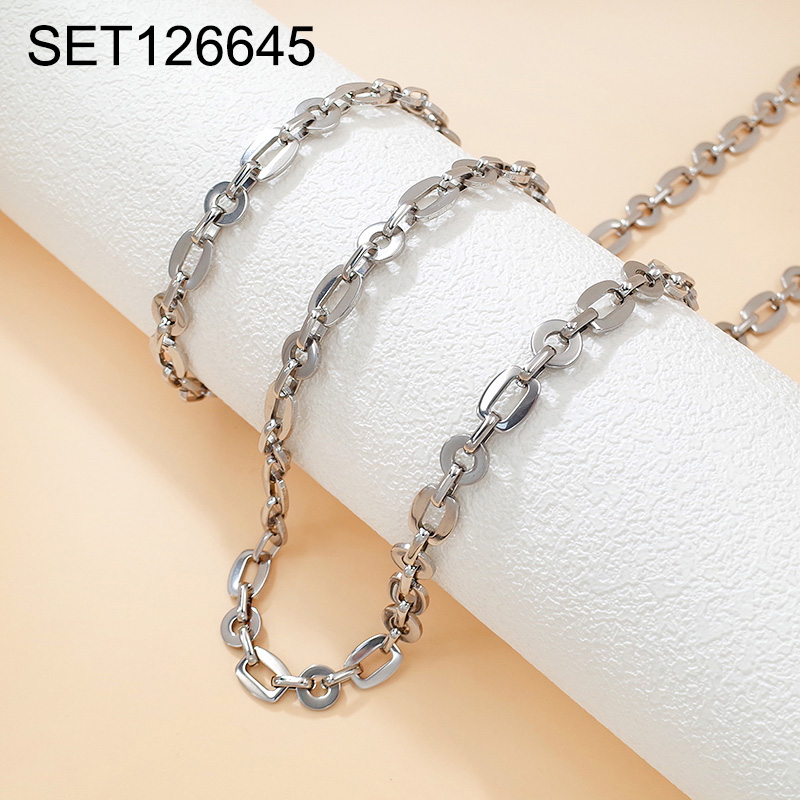 Level B Stainless Steel New Trendy Man Jewelry Steel color Chain SET