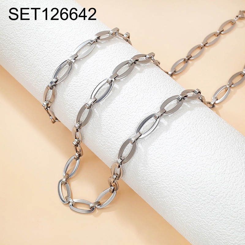 Level B Stainless Steel New Trendy Man Jewelry Steel color Chain SET