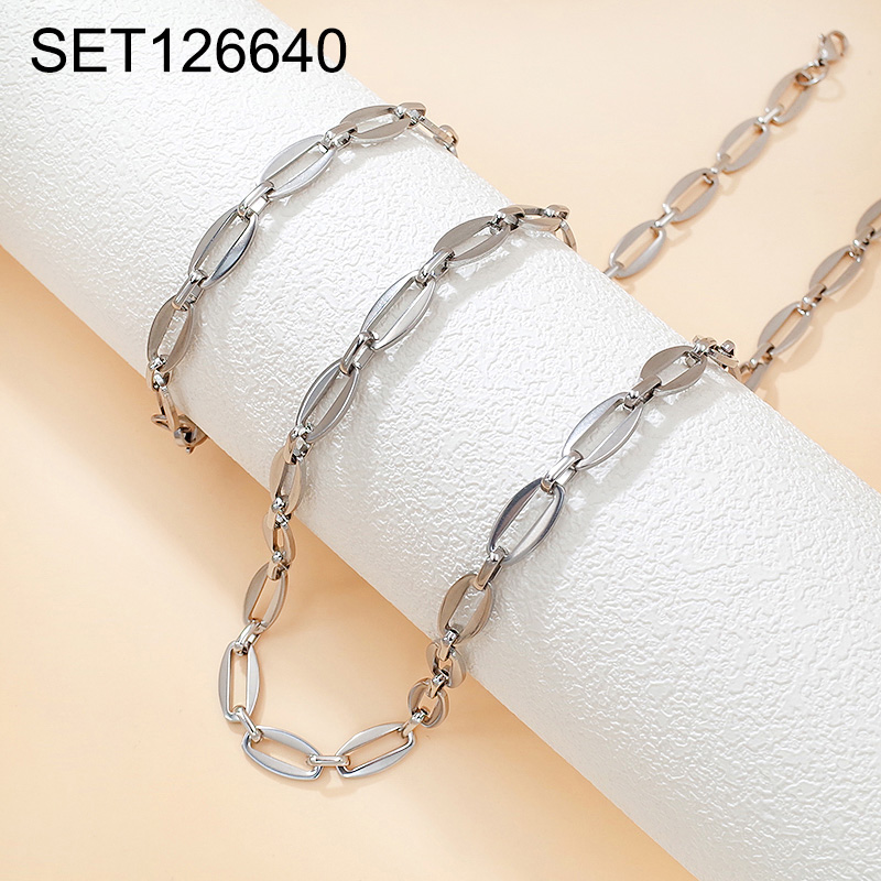Level B Stainless Steel New Trendy Man Jewelry Steel color Chain SET