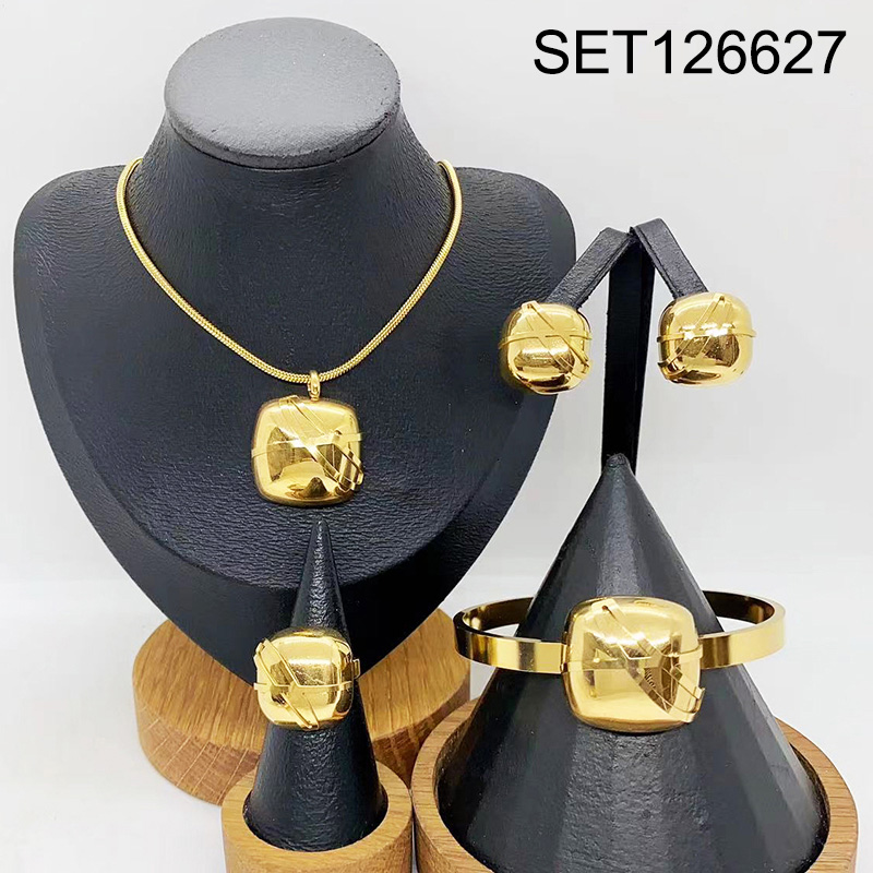 Level B Stainless Steel New Trendy Women Jewelry Geometry Golden 4pcs SET