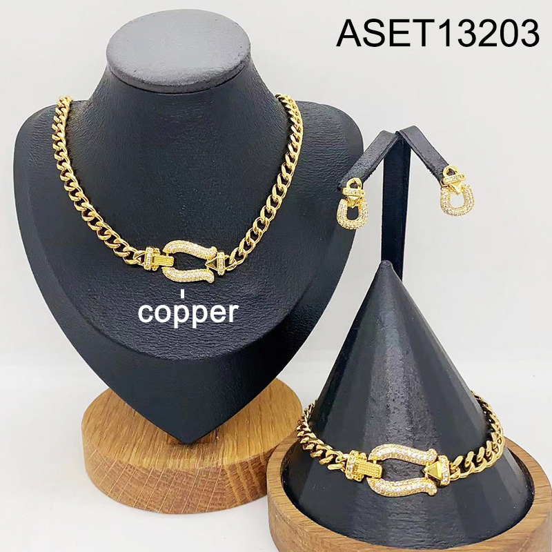 Level B Fashion Jewelry New Trendy Women Jewelry Magnet buckle Golden 3pcs SET;Material:copper (cobre)