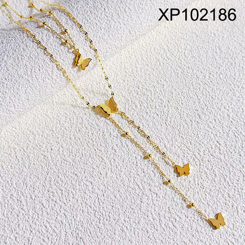 Home > Level B Stainless Steel New Trendy Women Jewelry Two Layers Chain Animal Butterfly Golden Pendant